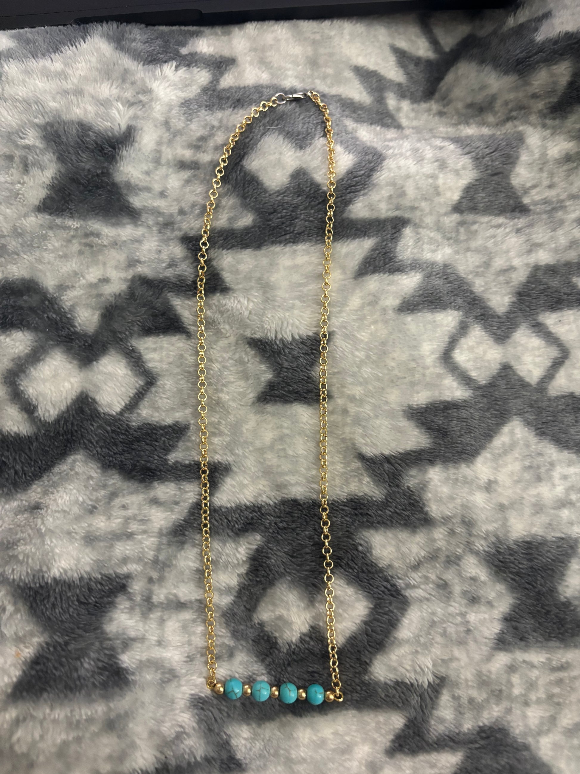A lovely hand crafted gold bead necklace with beautiful turquoise accent beads